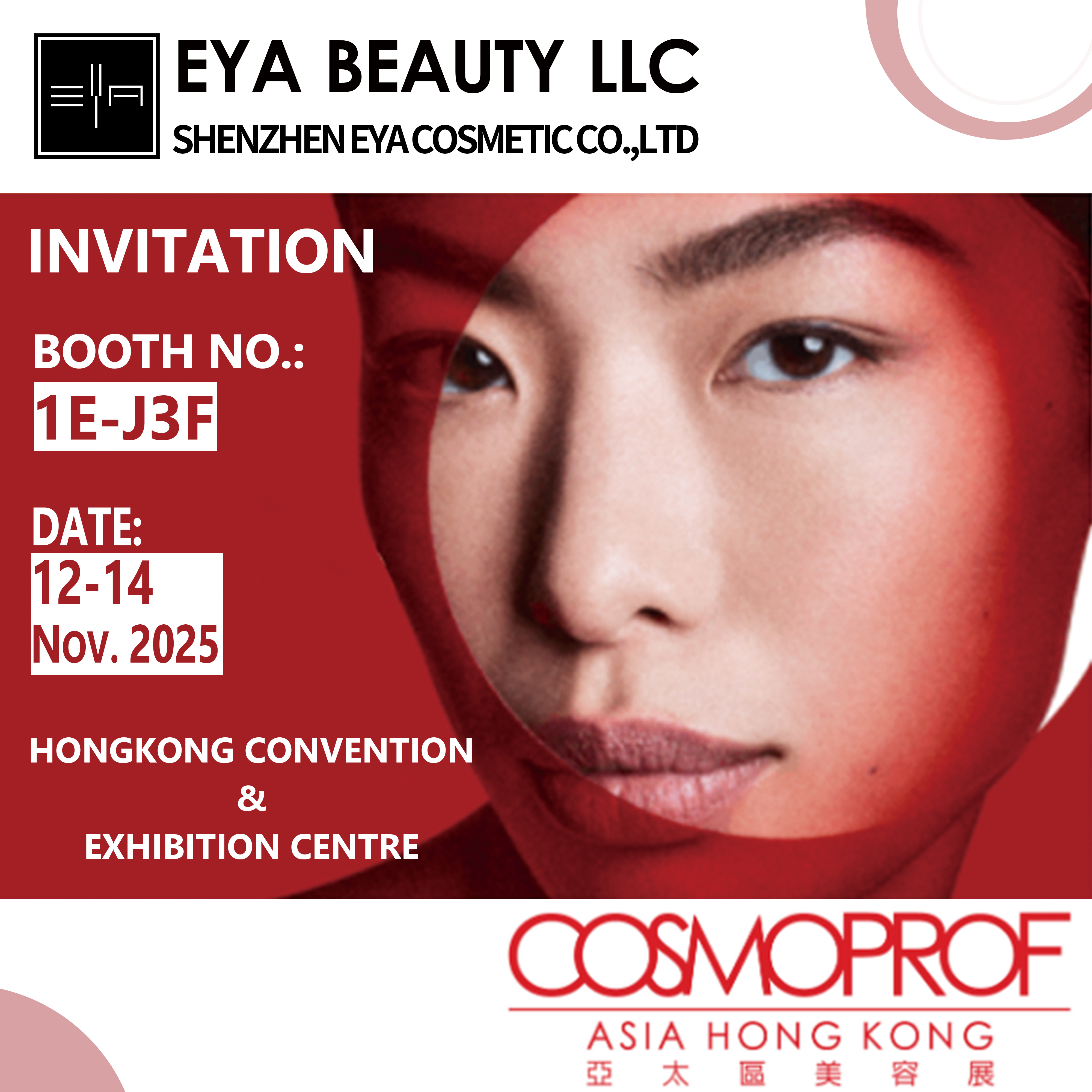 Our company Shenzhen Eya Cosmetic Co., Ltd will attend the COSMOPROF ASIA HONGKONG